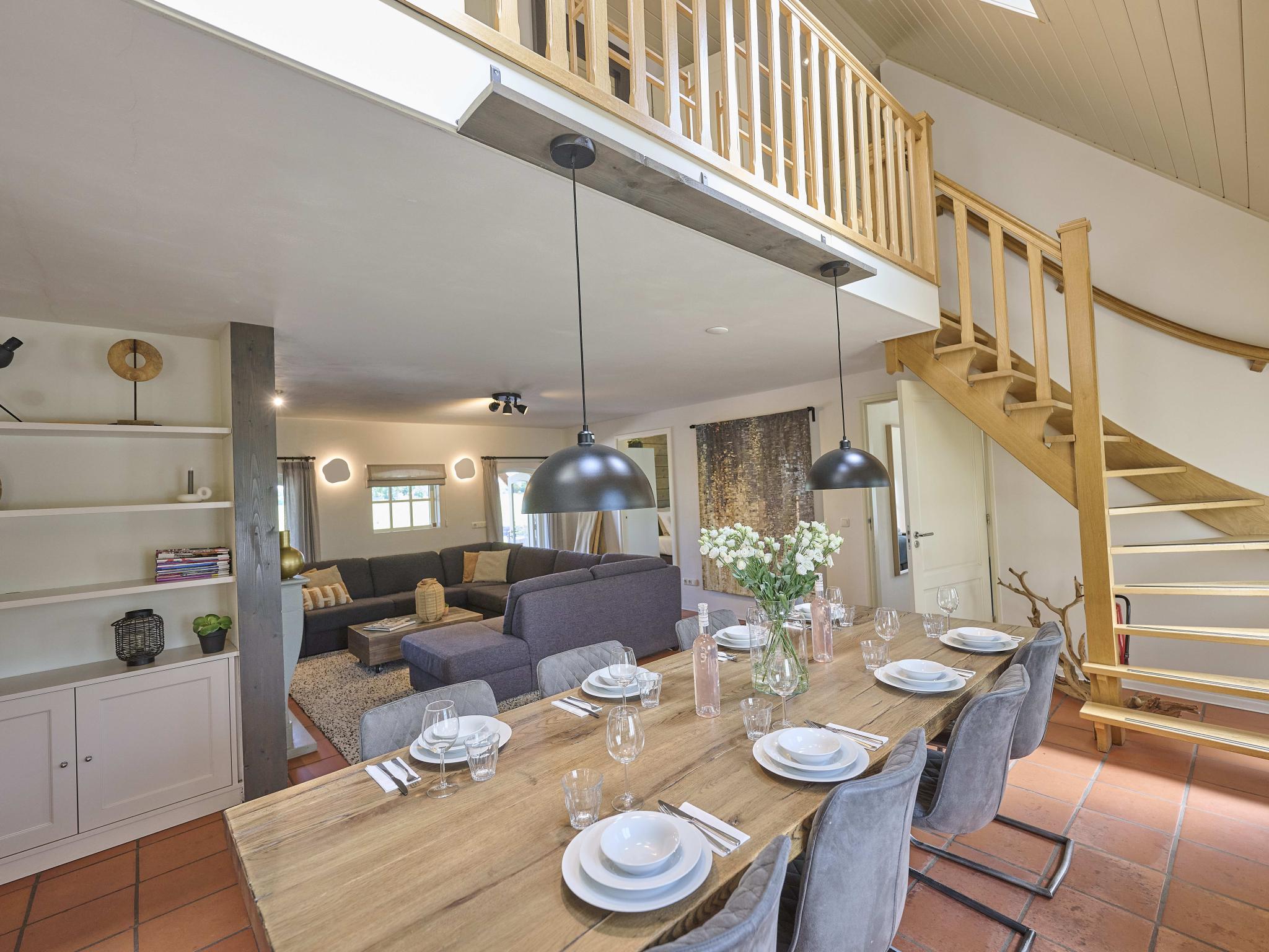 Begane grond: hal met stofzuiger , woonkamer met TV(flatscreen, smart TV, Nederlandse zender(s), Duitse zender(s), internationale zender(s)), sfeerhaard, zithoek(8 personen), draadloos muzieksysteem, gezelschapsspellen , eetkamer met eettafel(10 personen) , open keuken met kookplaat(5 kookplaten, inductie), broodrooster, afzuigkap, koffiezetapparaat(filtermaling, pads, nespresso cups), oven(hetelucht), grill, combimagnetron, afwasmachine, koel-/vriescombinatie, citruspers, Staafmixer , slaapkamer(bereikbaar via doorloop(slaap)kamer) met 2-pers. bed(boxspring, 180 x 210 cm), ventilator , slaapkamer(bereikbaar via doorloop(slaap)kamer) met 2-pers. bed(boxspring, 180 x 210 cm), ventilator , toilet(bereikbaar via doorloop(slaap)kamer) met wastafel , stofzuiger